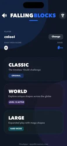 Classic: The original experience using the well-known block forms. Simple rules with increasing speed make this mode ideal for competitive scoring and long survival runs.