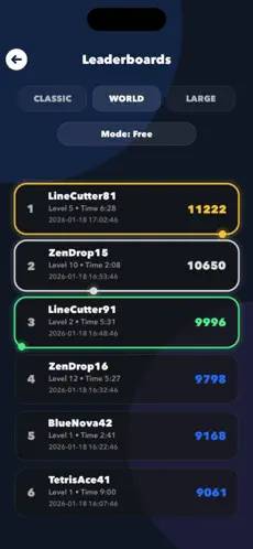 World: Expands the classic formula with additional block shapes that introduce new challenges and require advanced spatial thinking and adaptability.
